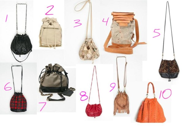 So I’ve been doing some internet surfing around shopping websites and have noticed that bucket bags are breeding in front of our very eyes. Not really but it seems like it. They were huge during the 80s and the 90s and since last year fashionistas have been blogging about them more often. They’re good for throwing things in them and they look laid back yet very chic, maybe even elegant depending on the fabric, I get it. So are they back? Are they already out? Were they ever gone? Do you care? If you do care then here are ten bucket bags of all sizes, styles, fabrics, and prices. There’s a 99.9% chance that you’ll like at least one of them and a 50% chance that you’ll buy it. You’re welcome.