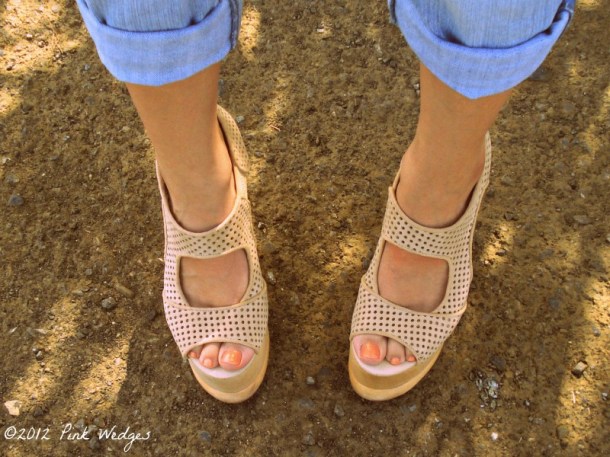 Perforated wedges that go well with the perforated bag post from a few weeks ago, right? These babies are the Jeffrey Campbell Skyrooms. Why the name you ask, look out below.